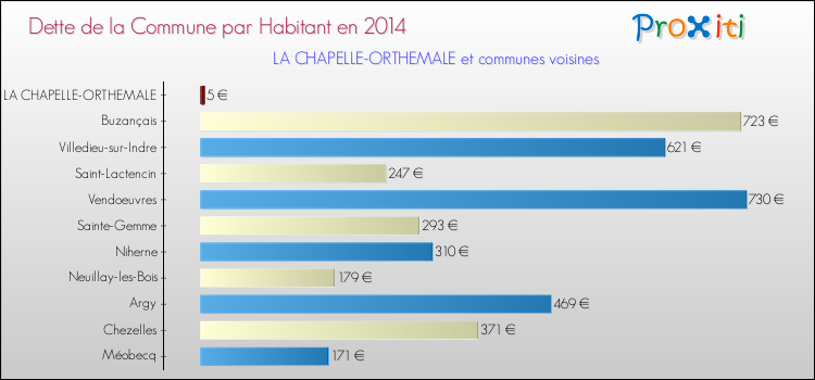 A La Chapelle-Orthemale, la dette due par habitant de la commune en 2014 est donc moins élevée de 99.06 % que pour des communes similaires.