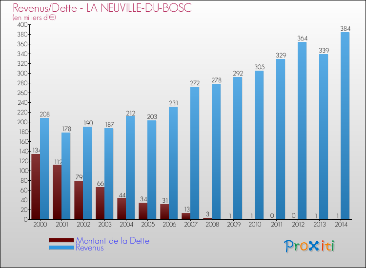 Comparaison Revenus/Dette de La Neuville-du-Bosc (de 2000 à 2014)