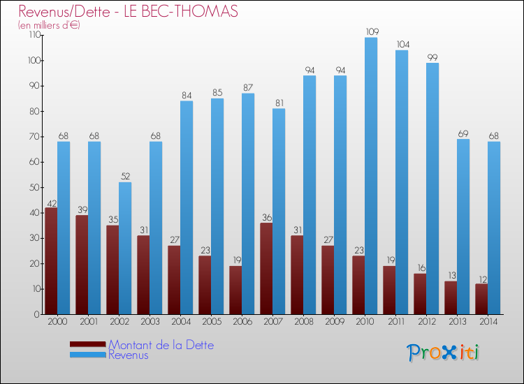 Comparaison Revenus/Dette de Le Bec-Thomas (de 2000 à 2014)