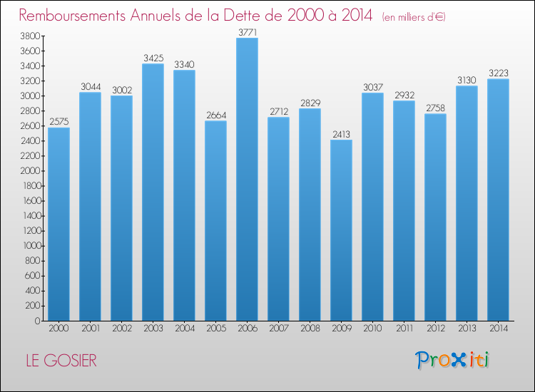 A Le Gosier, ce montant de la dette est en augmentation de 0.75 % par rapport à 2013.