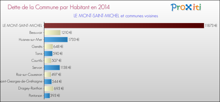 A Le Mont-Saint-Michel, la dette due par habitant de la commune en 2014 est donc plus élevée de 2140.19 % que pour des communes similaires.
