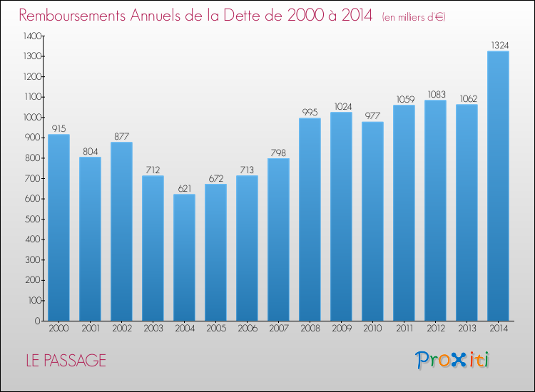 A Le Passage, ce montant de la dette est en augmentation de 27.79 % par rapport à 2013.