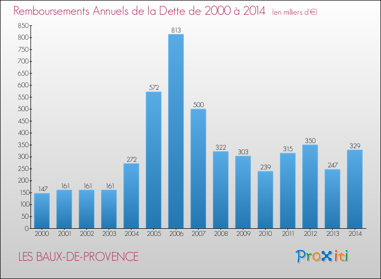 A noter : la valeur moyenne de la dette par habitant des communes françaises similaires à Les Baux-de-Provence était de 485 € par habitant, en 2014.