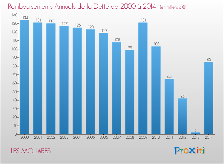 A Les Molières, ce montant de la dette est en augmentation de 17400 % par rapport à 2013.