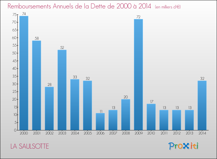 Par rapport aux 688 habitants de La Saulsotte, en 2014 le poids de cette dette représente 317 € par habitant.
