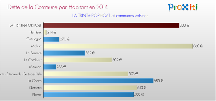 Par rapport aux 706 habitants de La Trinité-Porhoët, en 2014 le poids de cette dette représente 800 € par habitant.