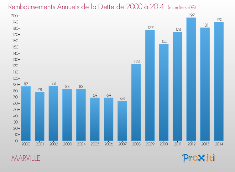 A Marville, la dette par habitant a donc augmenté de 90.4 % entre 2000 et 2014.