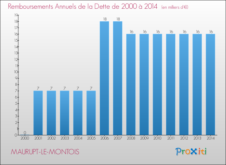 Pendant la même période, les communes françaises similaires à Maurupt-le-Montois, ont vu leur dette par habitant augmenter de 31.16 % en moyenne entre 2000 et 2014.