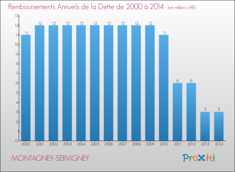 A Montagney-Servigney, ce montant de la dette est pourtant en baisse de 9.38 % par rapport à 2013.