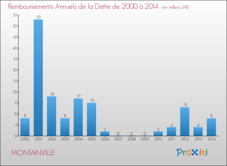 A Montainville, la dette par habitant a donc augmenté de 93.39 % entre 2000 et 2014.