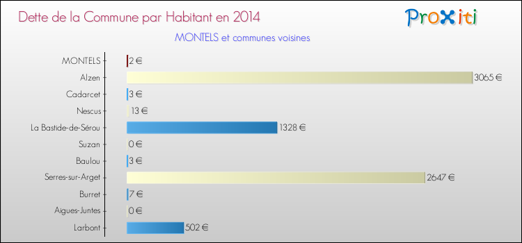 Par rapport aux 165 habitants de Montels, en 2014 le poids de cette dette représente 2 € par habitant.
