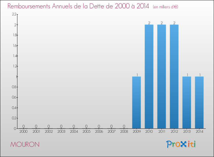 Par rapport aux 89 habitants de Mouron, en 2014 le poids de cette dette représente 202 € par habitant.