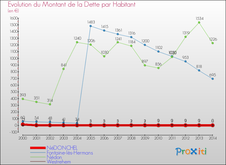 A Nédonchel, la dette par habitant a donc baissé de 100 % entre 2000 et 2014.