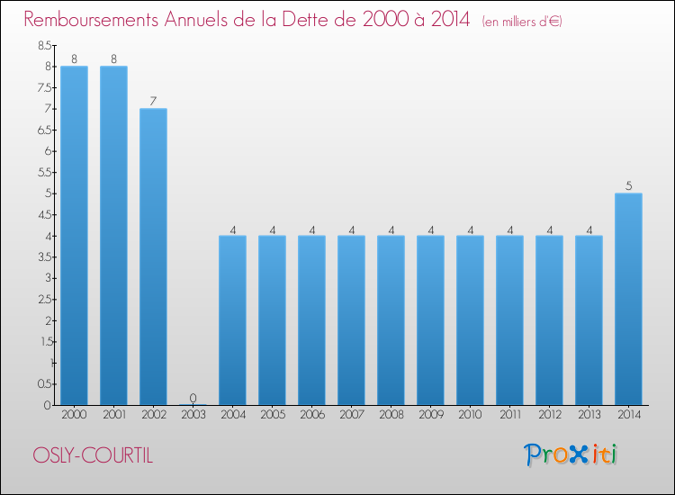 A Osly-Courtil, ce montant de la dette est pourtant en baisse de 7.41 % par rapport à 2013.