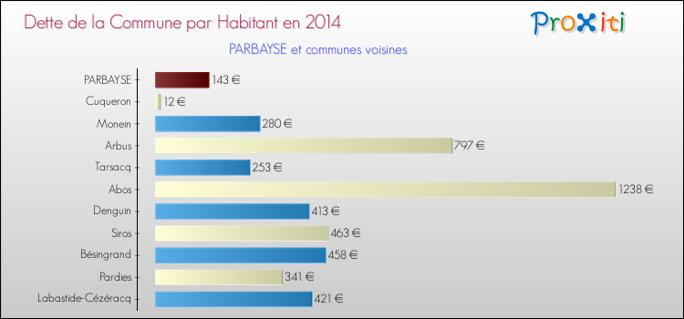 Par rapport aux 258 habitants de Parbayse, en 2014 le poids de cette dette représente 143 € par habitant.