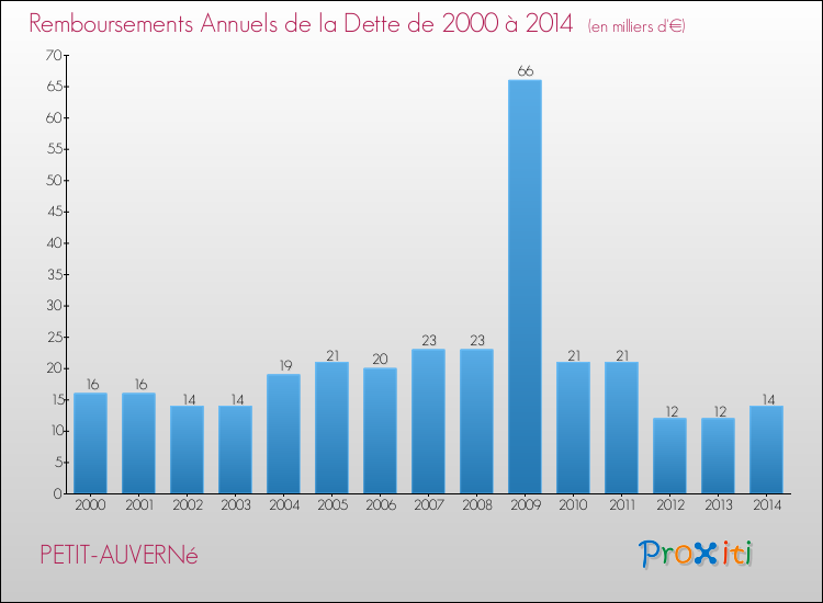 A Petit-Auverné, ce montant de la dette est en augmentation de 40.65 % par rapport à 2013.