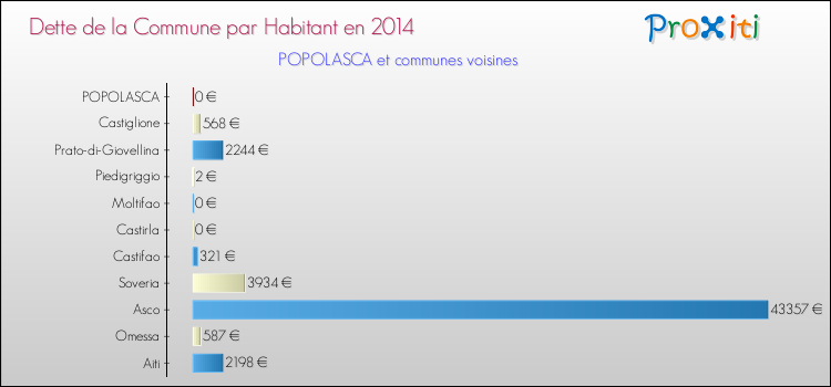 A noter : la valeur moyenne de la dette par habitant des communes françaises similaires à Popolasca était de 524 € par habitant, en 2014.