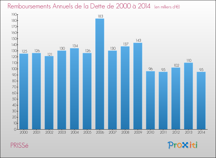 Par rapport aux 1877 habitants de Prissé, en 2014 le poids de cette dette représente 500 € par habitant.