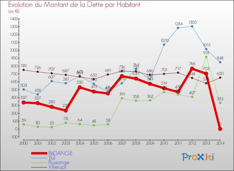 Par rapport aux 0 habitants de Rédange, en 2014 le poids de cette dette représente 0 € par habitant.