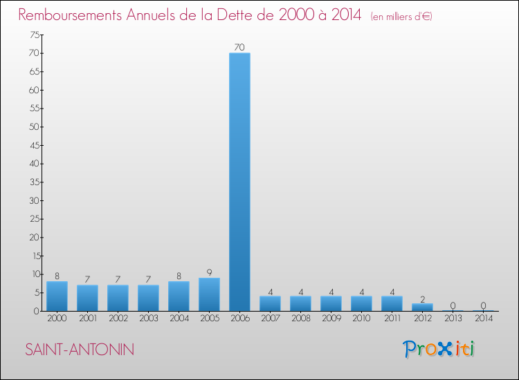 En 2014, Saint-Antonin a dû payer 0 € rien que pour rembourser sa dette.