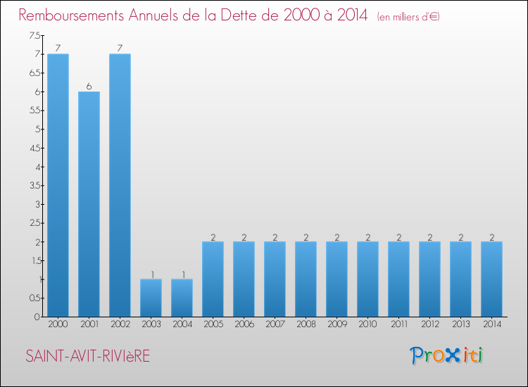 Par rapport aux 83 habitants de Saint-Avit-Rivière, en 2014 le poids de cette dette représente 0 € par habitant.