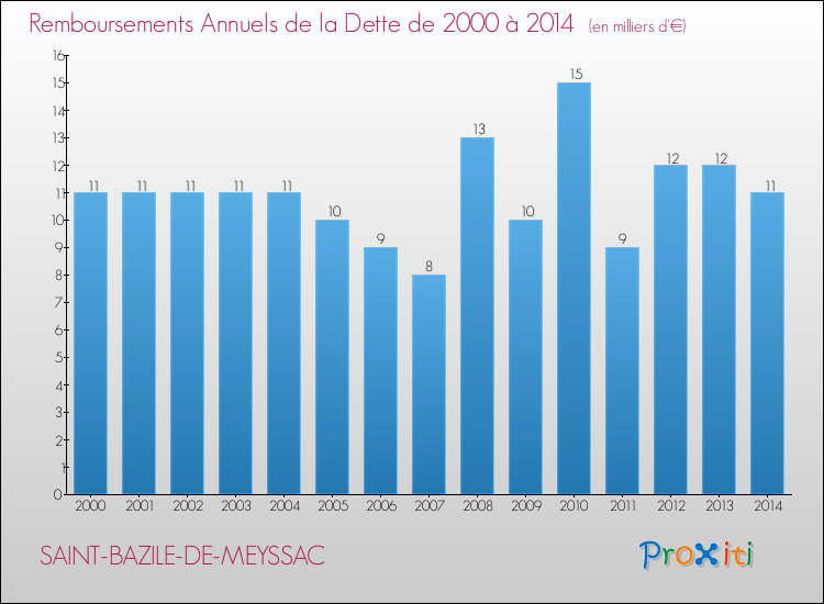 A Saint-Bazile-de-Meyssac, la dette par habitant a donc augmenté de 54.34 % entre 2000 et 2014.