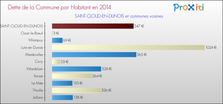 Comparaison de la dette par habitant de la commune en 2014 pour SAINT-CLOUD-EN-DUNOIS et les communes voisines