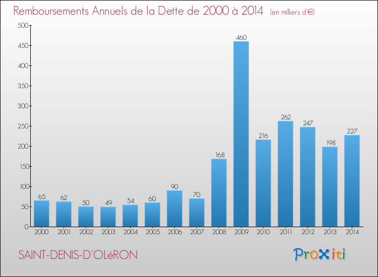 Par rapport aux 1403 habitants de Saint-Denis-d'Oléron, en 2014 le poids de cette dette représente 1895 € par habitant.