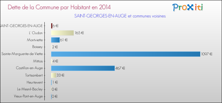 Par rapport aux 103 habitants de Saint-Georges-en-Auge, en 2014 le poids de cette dette représente 6 € par habitant.