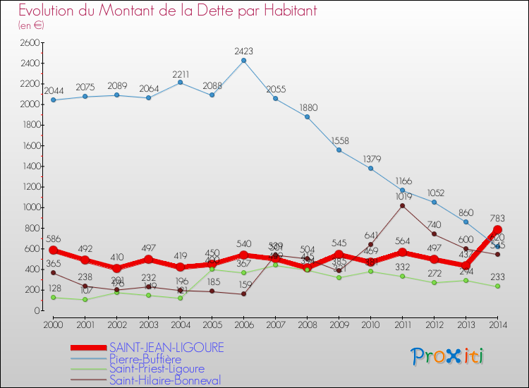 Par rapport aux 449 habitants de Saint-Jean-Ligoure, en 2014 le poids de cette dette représente 783 € par habitant.