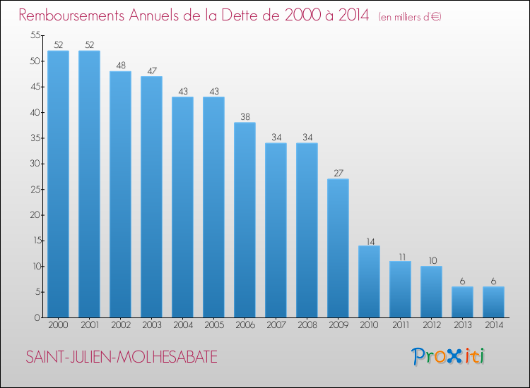 Annuités de la dette  pour SAINT-JULIEN-MOLHESABATE de 2000 à 2014