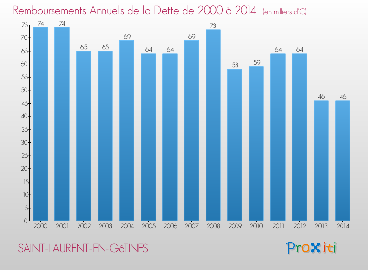 A Saint-Laurent-en-Gâtines, la dette par habitant a donc baissé de 21.96 % entre 2000 et 2014.