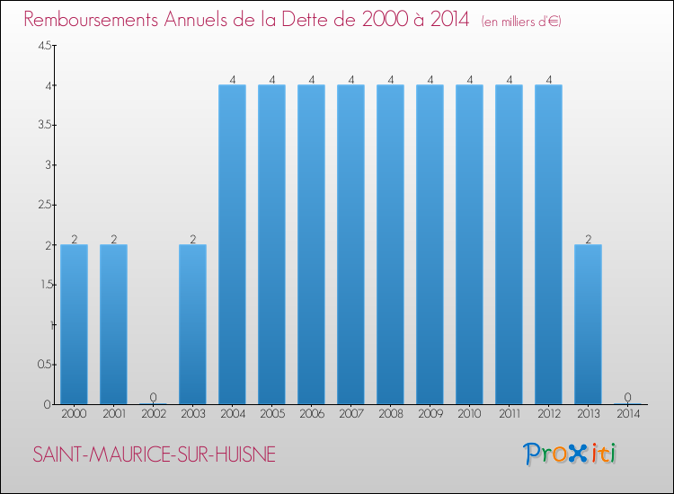 En 2014, Saint-Maurice-sur-Huisne a dû payer 0 € rien que pour rembourser sa dette.