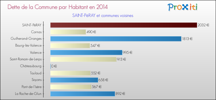 A Saint-Péray, la dette due par habitant de la commune en 2014 est donc plus élevée de 133.56 % que pour des communes similaires.