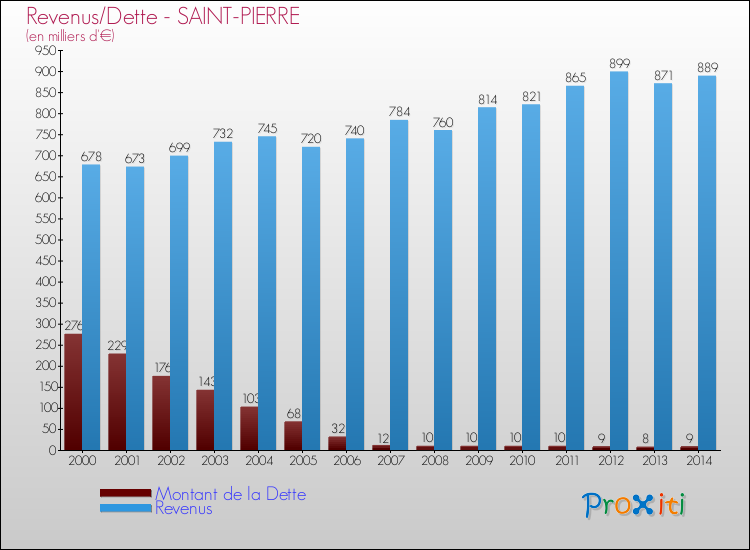 Comparaison Revenus/Dette de Saint-Pierre (de 2000 à 2014)