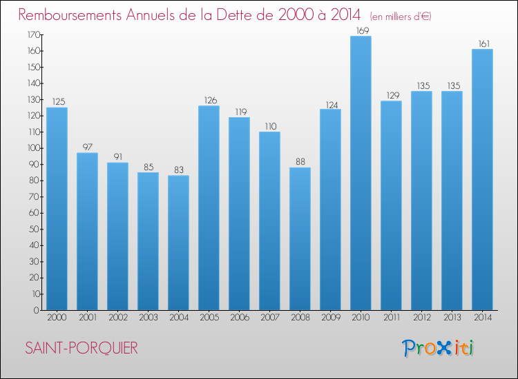 A Saint-Porquier, ce montant de la dette est en augmentation de 15.56 % par rapport à 2013.