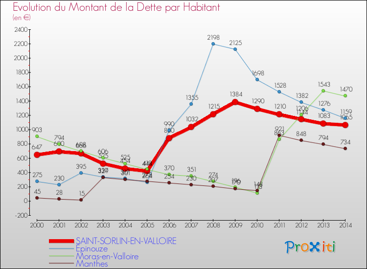 Par rapport aux 2178 habitants de Saint-Sorlin-en-Valloire, en 2014 le poids de cette dette représente 1065 € par habitant.