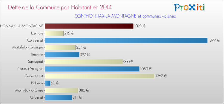 Par rapport aux 335 habitants de Sonthonnax-la-Montagne, en 2014 le poids de cette dette représente 1020 € par habitant.