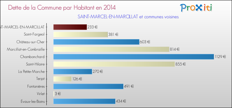 Par rapport aux 152 habitants de Saint-Marcel-en-Marcillat, en 2014 le poids de cette dette représente 233 € par habitant.