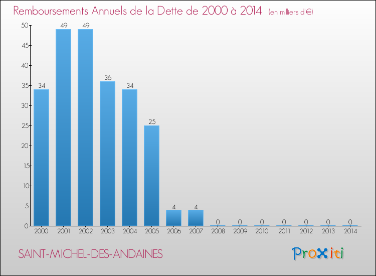En 2014, Saint-Michel-des-Andaines a dû payer 0 € rien que pour rembourser sa dette.