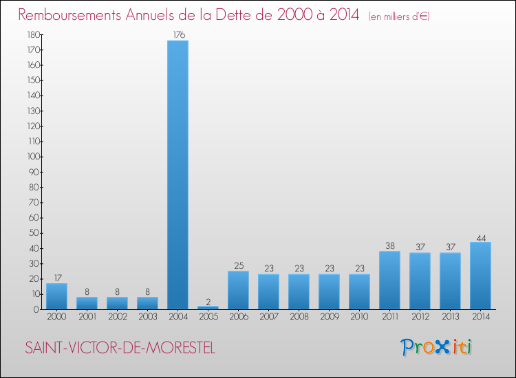 Annuités de la dette  pour SAINT-VICTOR-DE-MORESTEL de 2000 à 2014