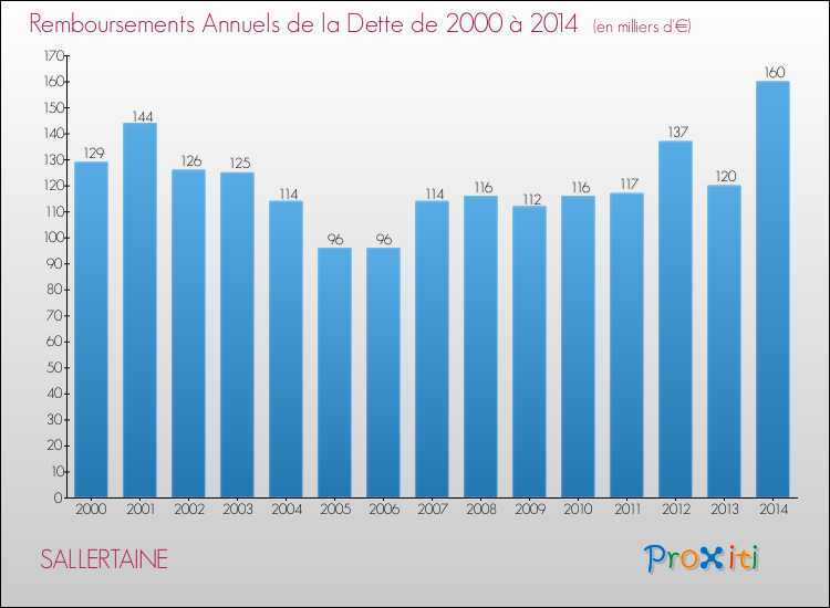 A Sallertaine, ce montant de la dette est en augmentation de 154.14 % par rapport à 2013.