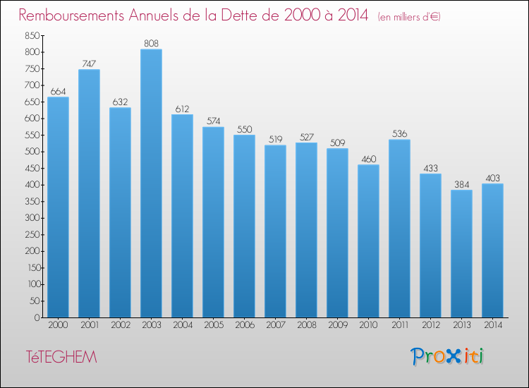 Par rapport aux 7248 habitants de Téteghem, en 2014 le poids de cette dette représente 551 € par habitant.