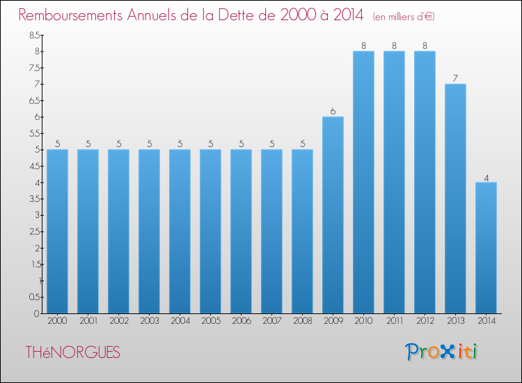 A Thénorgues, ce montant de la dette est pourtant en baisse de 4.88 % par rapport à 2013.