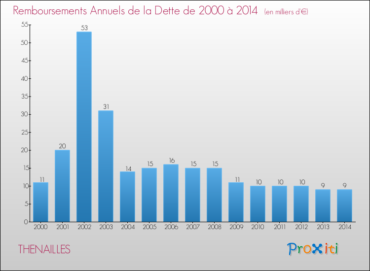 Annuités de la dette  pour THENAILLES de 2000 à 2014