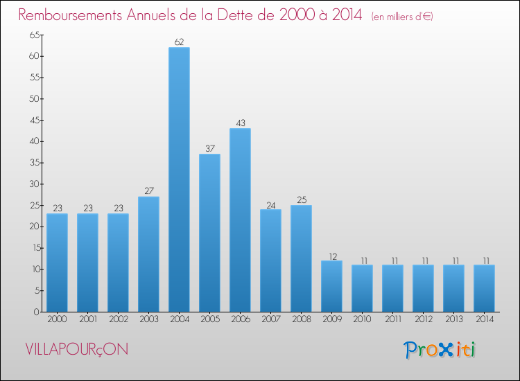 A Villapourçon, ce montant de la dette est pourtant en baisse de 20.41 % par rapport à 2013.