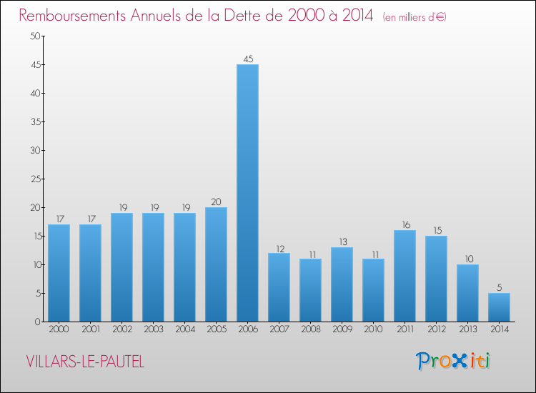 Par rapport aux 176 habitants de Villars-le-Pautel, en 2014 le poids de cette dette représente 88 € par habitant.