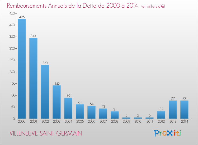 En 2014, Villeneuve-Saint-Germain a dû payer 77 000 € rien que pour rembourser sa dette.