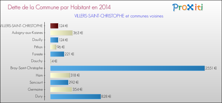A Villers-Saint-Christophe, la dette due par habitant de la commune en 2014 est donc moins élevée de 74.43 % que pour des communes similaires.