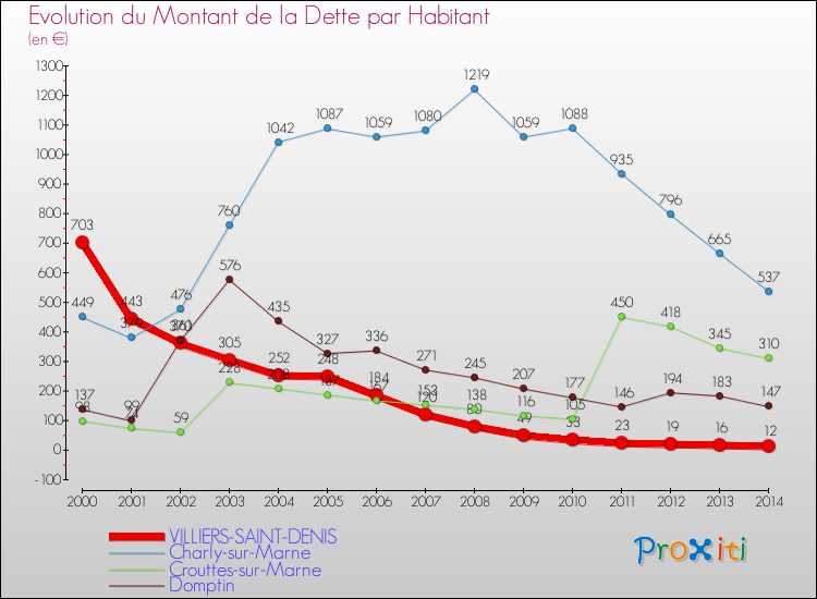 A Villiers-Saint-Denis, la dette par habitant a donc baissé de 98.29 % entre 2000 et 2014.